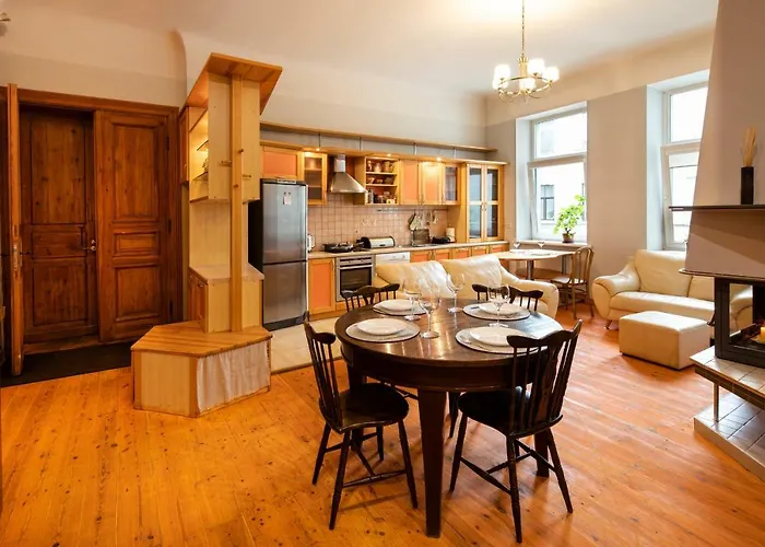 Localizado no bairro Centre, 5-minutos a pé de Museu Nacional de Arte Letã, o apartamento Riga City Family de 133 m^2 pode acomodar até 9 hóspedes. O apartamento dispõe de cozinha totalmente equipada juntamente com microondas, chaleira elétrica e um frigorífico.